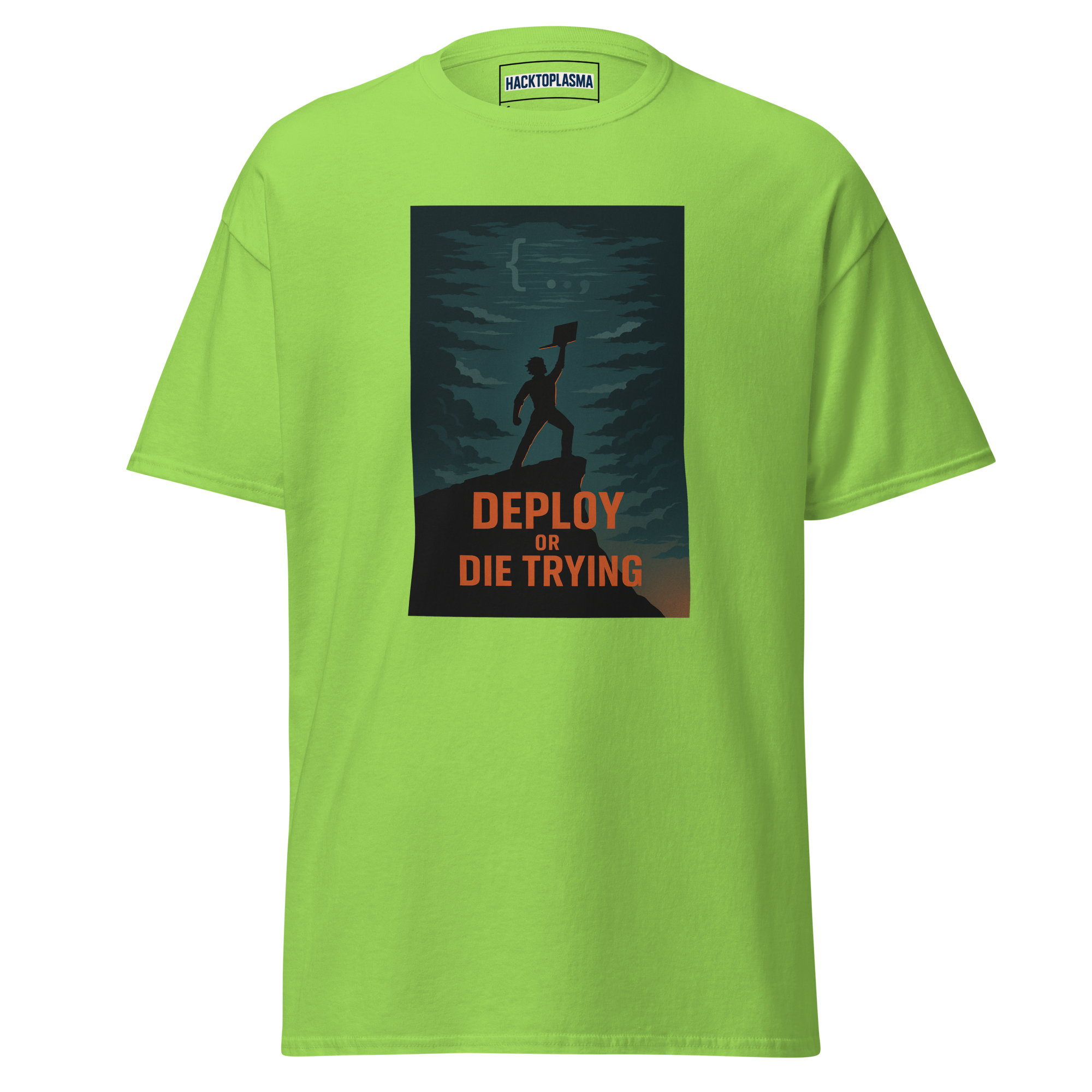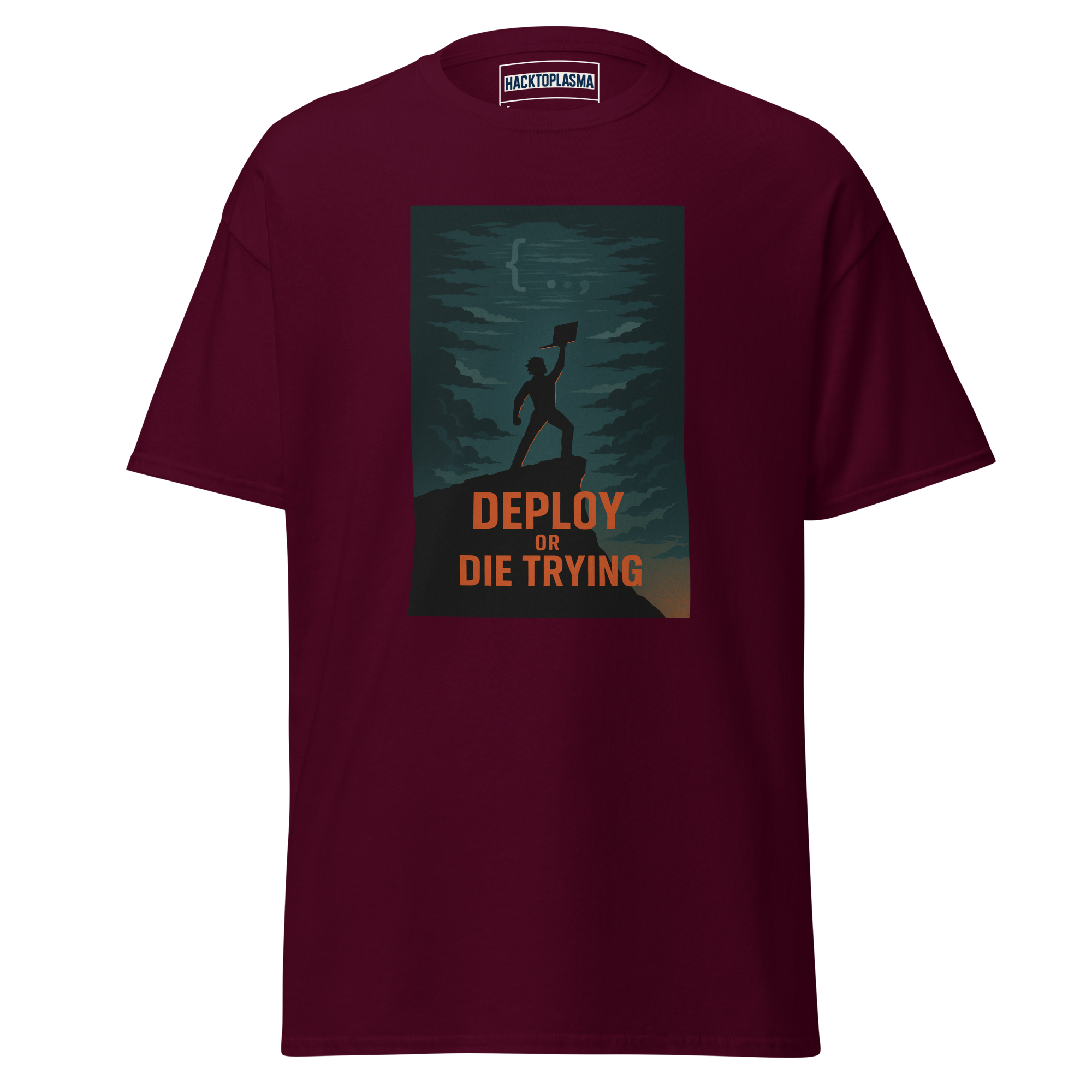 "Deploy or die trying" - 100% cotton nerd t-shirt