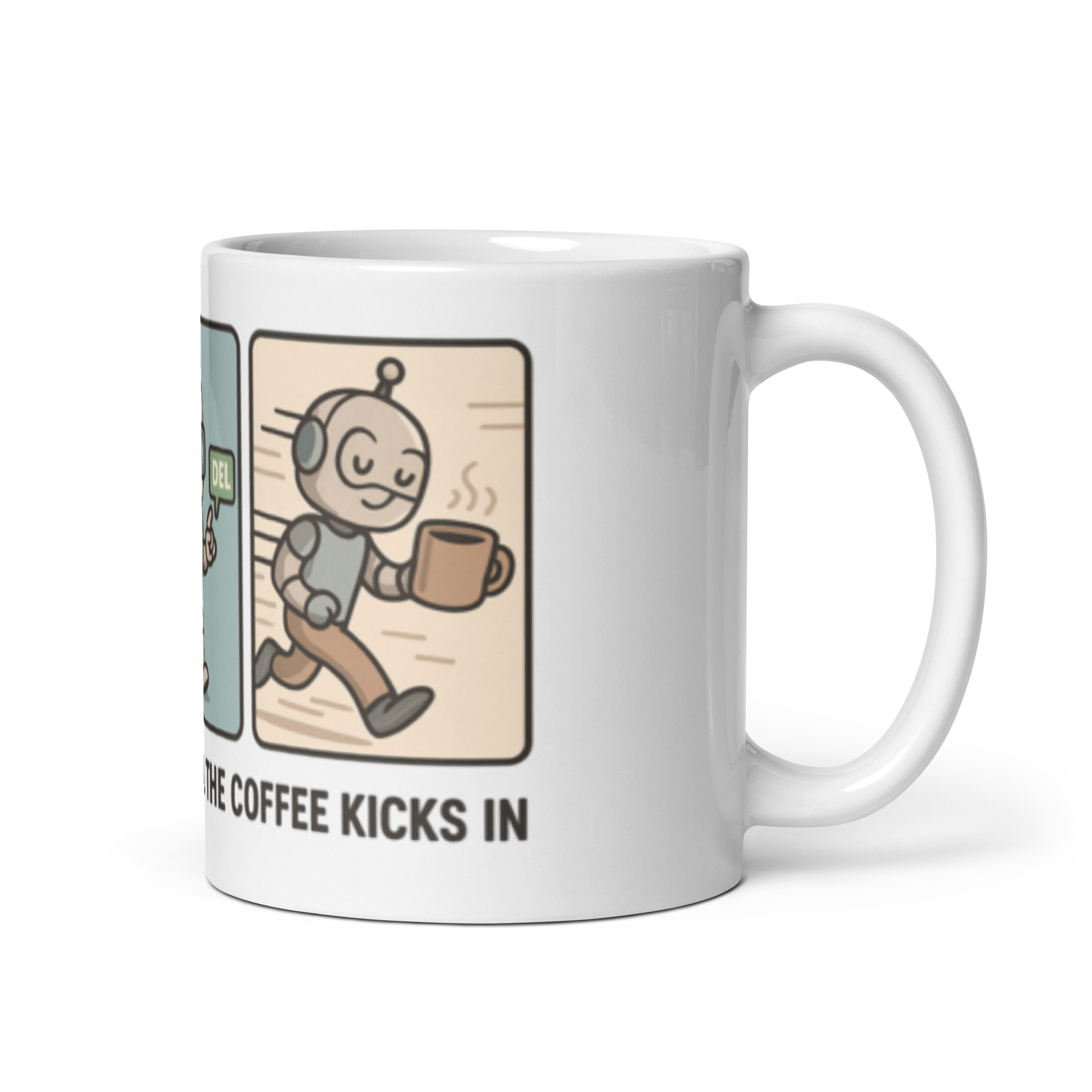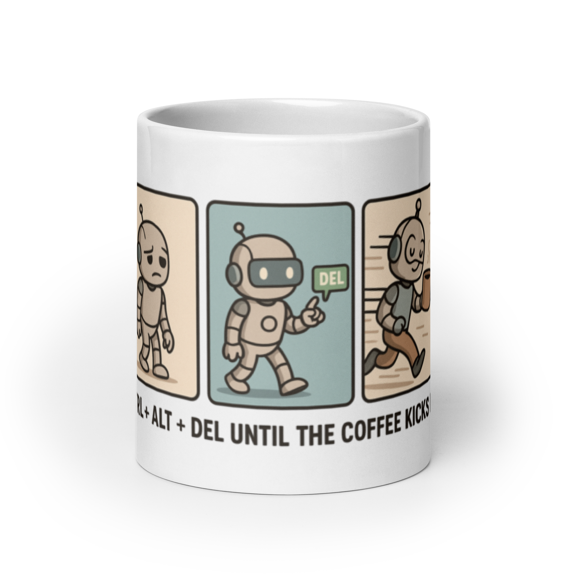 Whether you're booting up with a morning coffee, debugging with an evening tea, or recharging your batteries between calls, this mug is your ideal coding companion. Sturdy, glossy, and featuring a vibrant print that's dishwasher and microwave safe, it's ready to survive long deployment sessions.